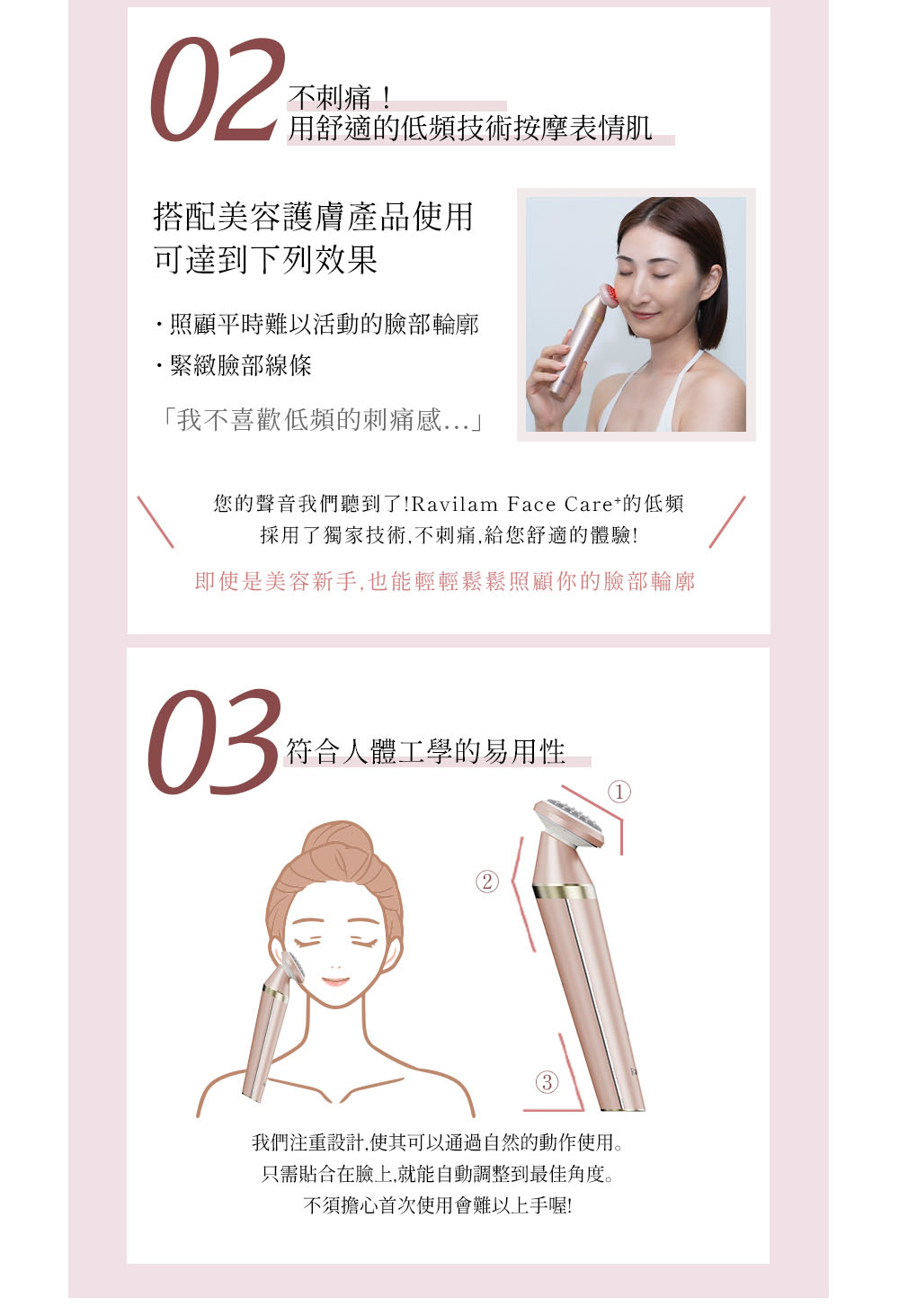 3. 低頻按摩:用舒適的低頻技術按摩表情肌。