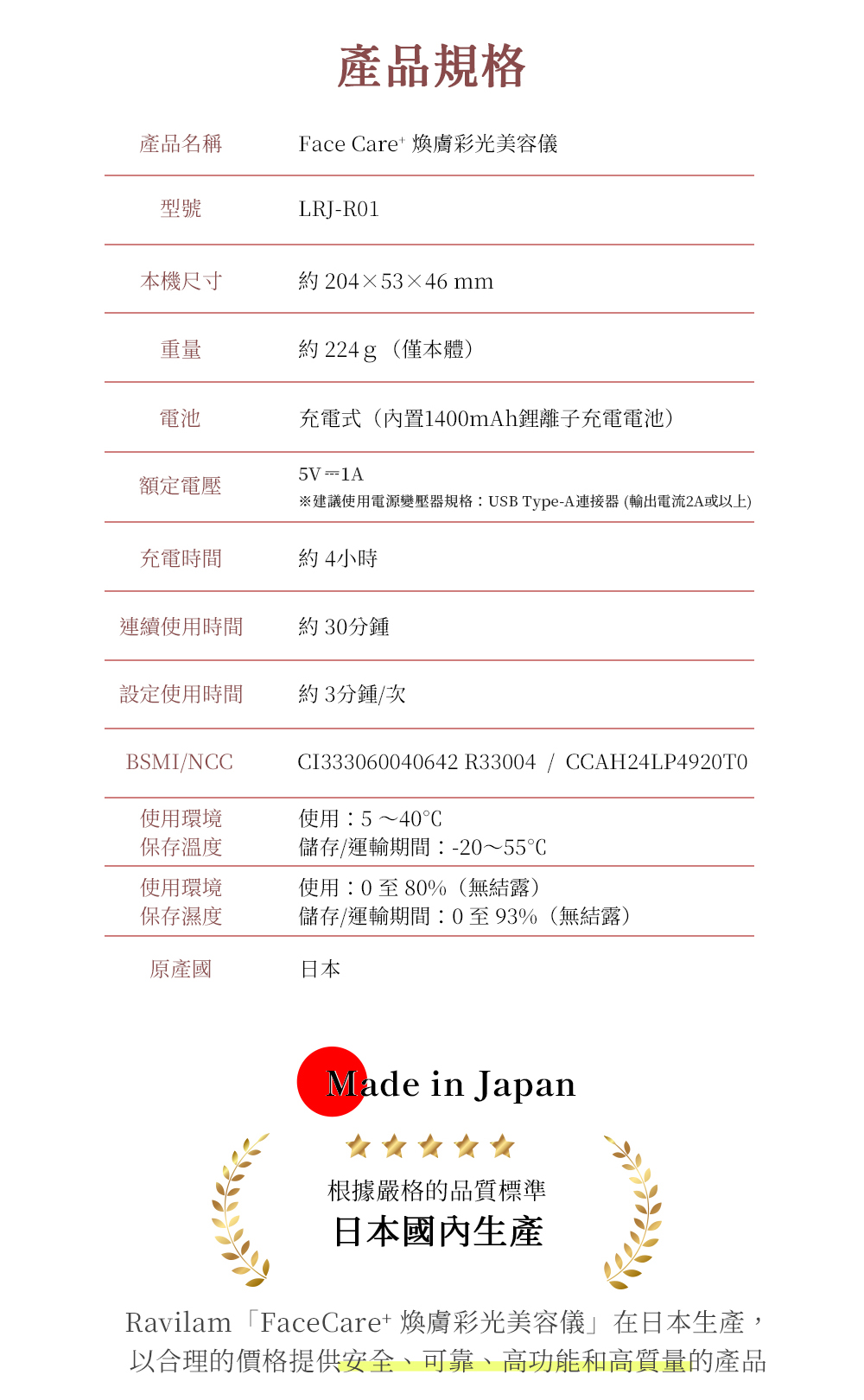 產品名稱:Face Care⁺煥膚彩光美容儀