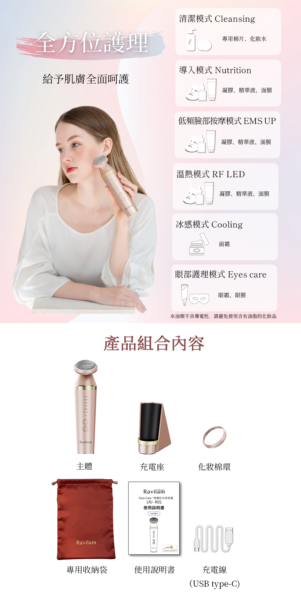 ※ 本產品為家用美容儀,須要搭配凝膠、化妝水、精華液等化妝品產品做加強導入使用。