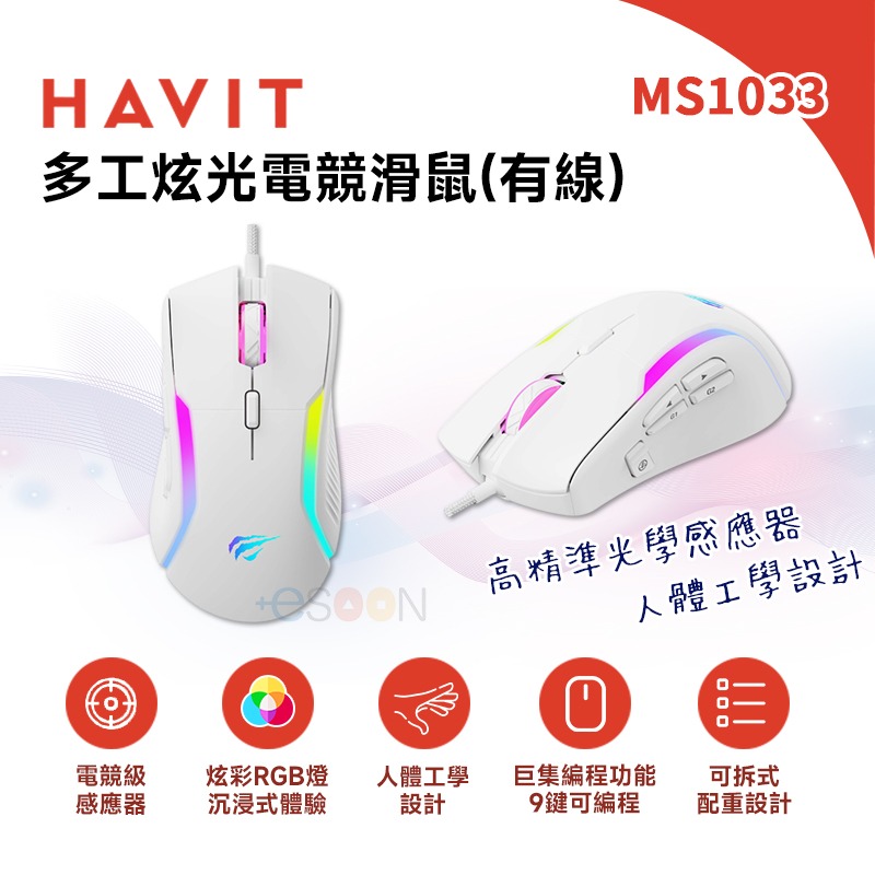 🎧『 HAVIT MS1033 多工炫光電競滑鼠 炫光白 』🎧