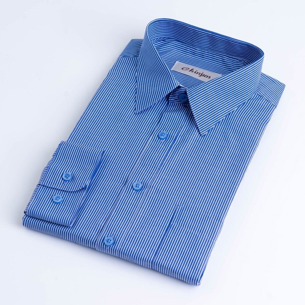 【CHINJUN】勁榮抗皺襯衫-長袖、藍底白線條、2014-9 台灣現貨 男襯衫 商務 口袋 硬領
