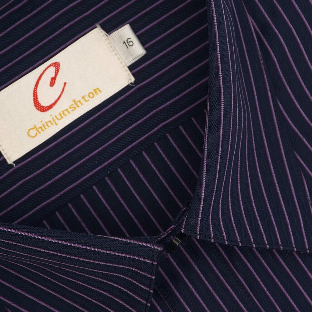 【CHINJUN】男士商務襯衫 抗皺加強 長袖 藍紫色條紋 8219 台灣現貨 男襯衫 商務 口袋 硬領