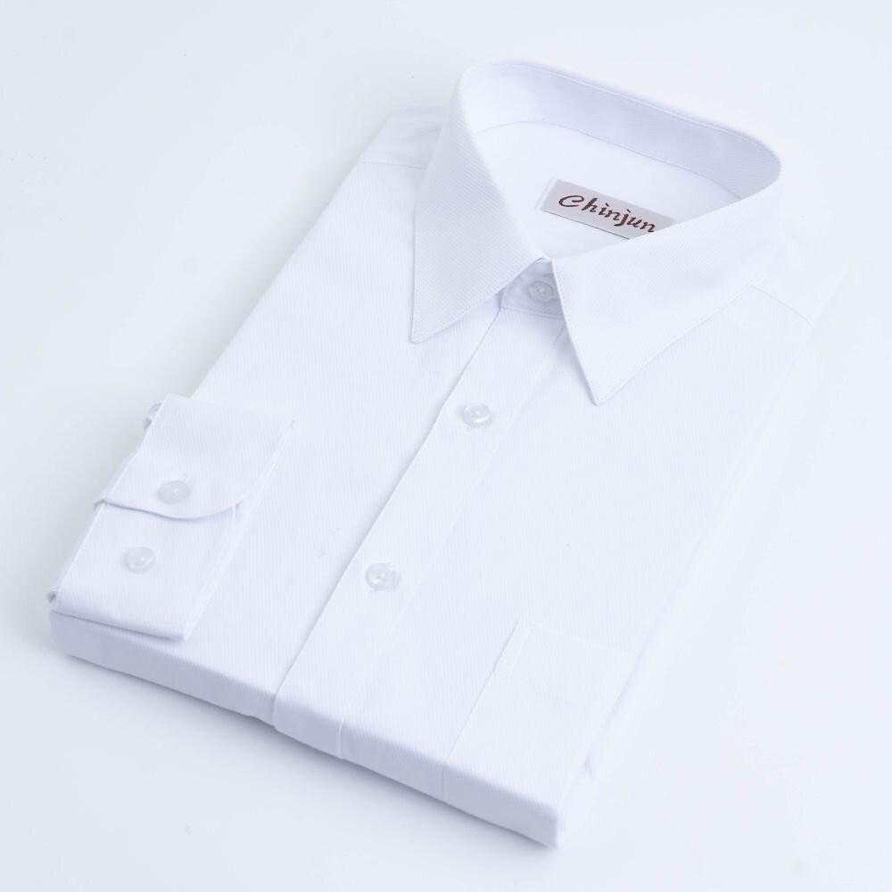 【CHINJUN】勁榮抗皺襯衫-長袖、白底斜紋、8056 台灣現貨 男襯衫 商務 口袋 硬領