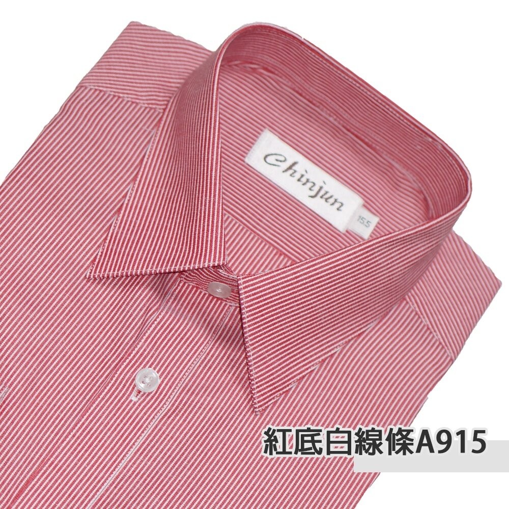 【CHINJUN】勁榮抗皺襯衫-長袖、紅底白線條、A915 台灣現貨 男襯衫 商務 口袋 硬領