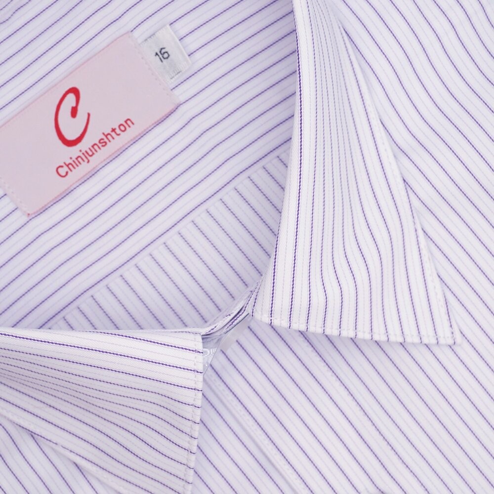 【CHINJUN】男士商務襯衫 抗皺加強 長袖 短袖 紫色條紋 3585 s3585 台灣現貨 男襯衫 商務 口袋 硬領