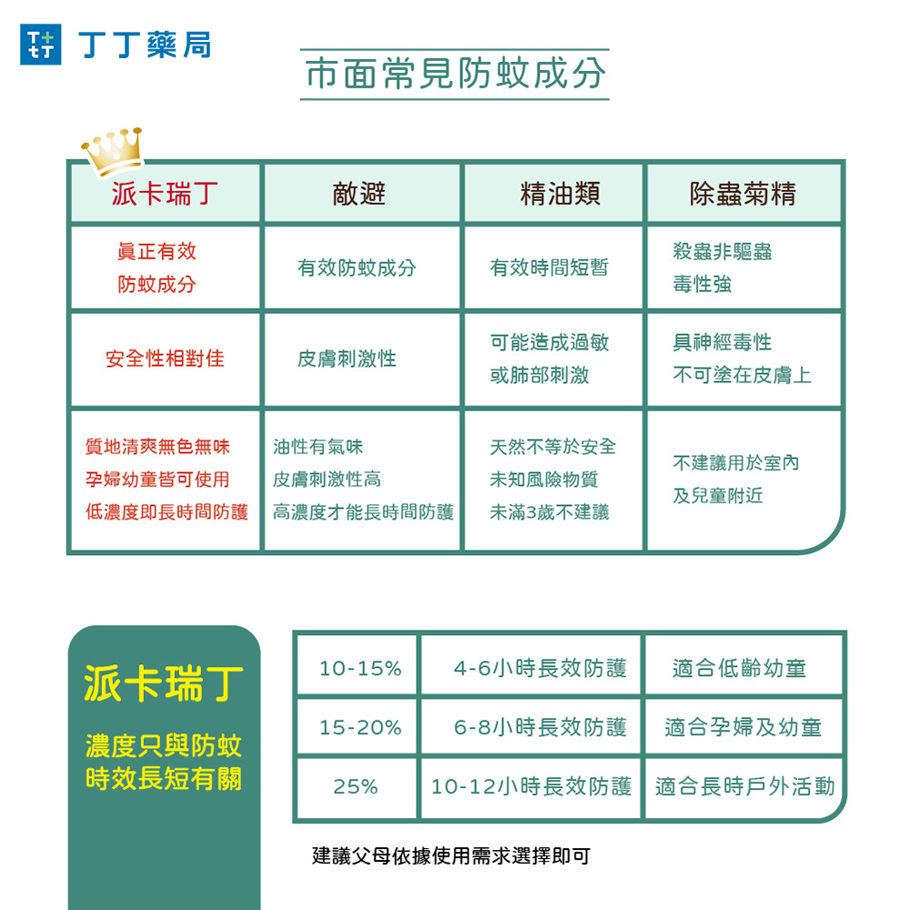 -能有效防止埃及斑蚊、白線斑蚊及小黑蚊叮咬,是對孕婦和孩童相對安全及有效的防蚊產品!