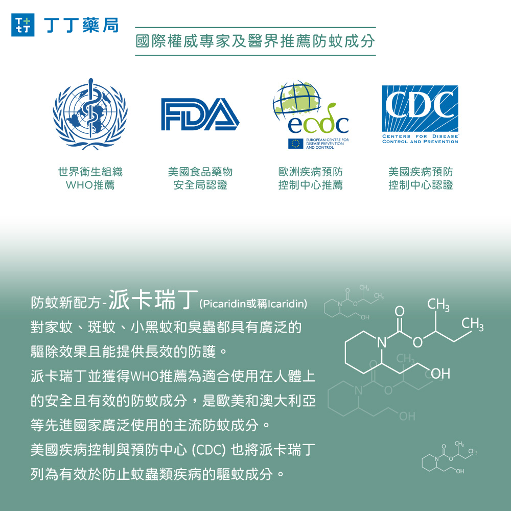 -有效成分:20% Icaridin (埃卡瑞丁),別名Picaridin (派卡瑞丁/避卡納叮)