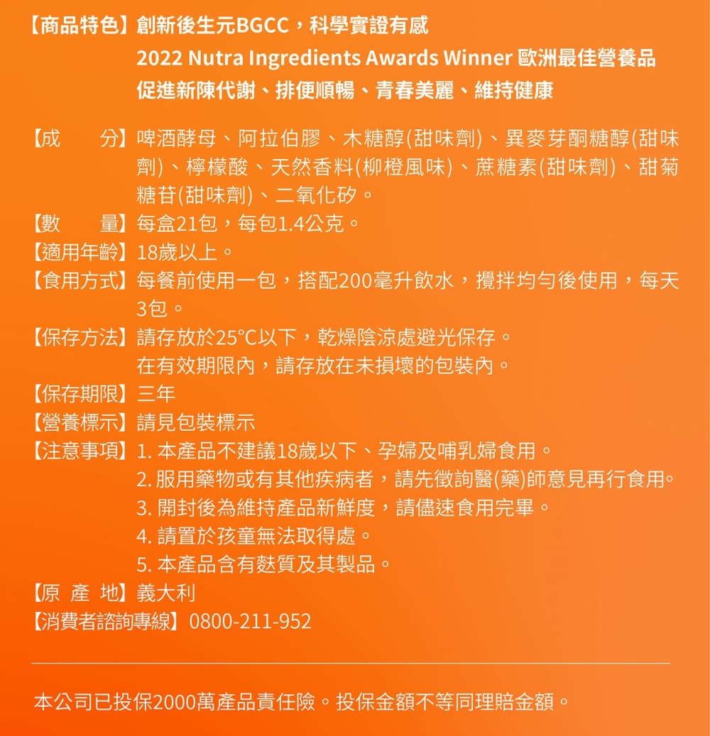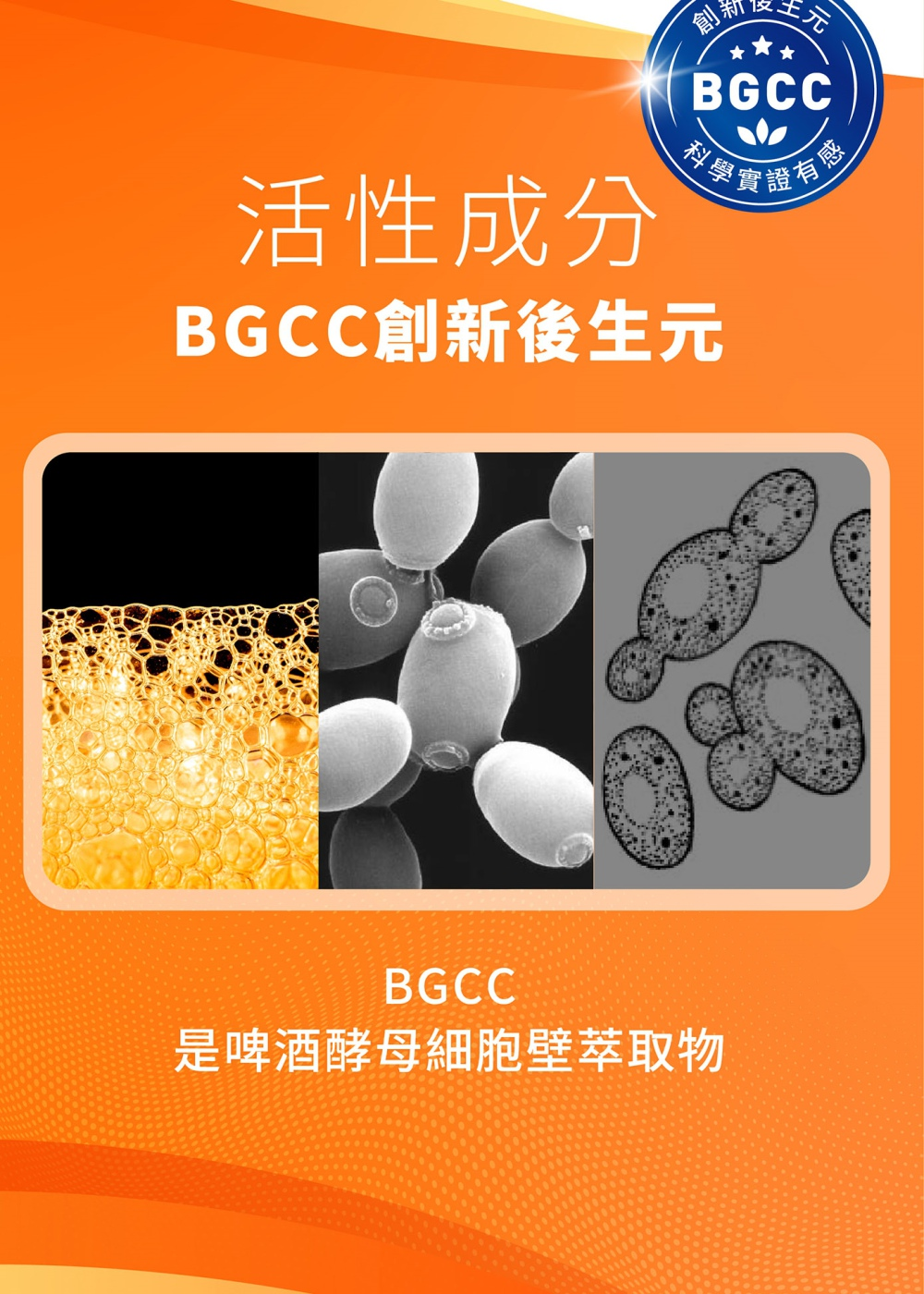 • 創新後生元BGCC,科學實證