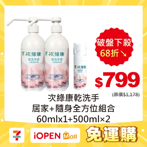 【7-ELEVEN 門市團購】次綠康乾洗手|居家+隨身全方位組合(60ml + 500ml×2)