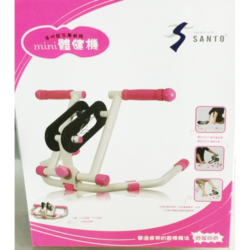 SANTO MINI 體健機 [全新品] 內容物:mini體健機x1 材質:TPR、鐵 展開尺寸:37 x 42 x 29 cm 收納尺寸:37 x 42 x 10 cm 產地:台灣