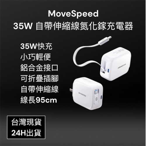 ⚠️全館免運 假日出貨 Movespeed 35W自帶線伸縮氮化鎵充電器 伸縮充電器 自帶線快充頭 35W氮化鎵