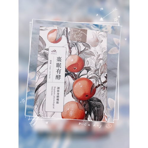 水、綜合醱酵濃縮液(諾麗果、水蜜桃、荔枝、紅葡萄柚、紅葡萄、蘋果、黑棗、石榴、柳橙、番茄、紫蘿蔔、野櫻莓、蔓越莓、草莓、覆盆莓、櫻桃、黑醋栗、醋栗、白葡萄、胡蘿蔔、甘蔗、百香果、鳳梨、檸檬、綠花椰菜、芹菜、蘆筍、藍莓、楊梅、桑椹) 乳糖、麩胺酸發酵物(含20%γ-胺基丁酸,GABA)、酸棗仁萃取物、烏梅萃取物、百合萃取物、羅漢果萃取物、啤酒酵母(含維生素B1、維生素B2、維生素B6、維生素B12、菸鹼素、葉酸、泛酸、生物素)、L-色胺酸、海水濃縮物(含鎂)、海藻鈣。