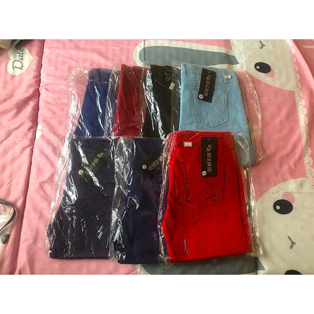 廠商庫存出清 便宜出售 售出不退換 原價490 出清價100 買到賺到 26-腰圍約26吋 全長約91cm 27-腰圍約27吋 全長約92cm 28-腰圍約28吋 全長約93cm 29-腰圍約29吋 全長約94cm 30-腰圍約30吋 全長約95cm 現貨 紫色-29/寶藍色-26.27.28.29/黑色-27.30/淺藍/28/酒紅-27/大紅-28
