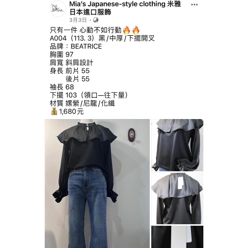 FB搜尋Mia’s Japanese-Style Clothing瀏覽更多的商品,欲選購可於此賣場為滴兒上架喔😊