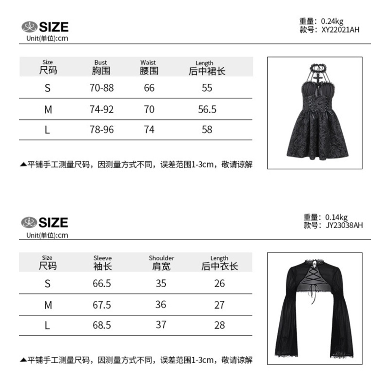 吊帶裙尺寸表為後中裙長,不含肩帶長度約22cm,