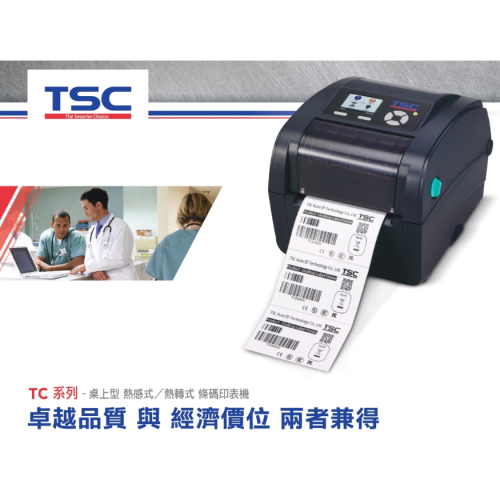 TC系列桌上型條碼標籤印表機為繼承熱銷款TTP-245C系列再建構彩色螢幕的全新設計,除了輕巧體積,更擁有客戶對產品期待的高效能品質。TC系列四吋寬印表機,支援標籤、吊牌與收據,列印速度達到每秒6英吋,其耐用、穩定、快速的特性,提供最佳的選擇。
