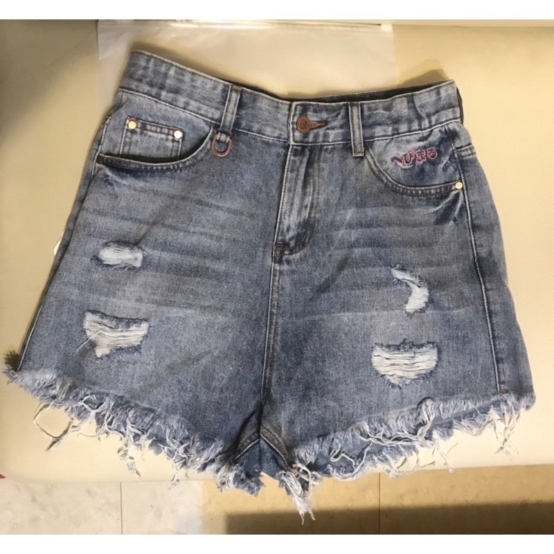 潮丸 - 日系手工抽鬚抓破_刺繡牛仔短褲 ( 女版 ) 30腰