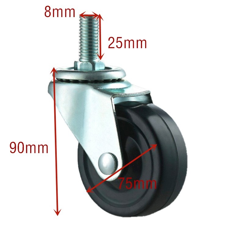 75mm萬向輪子4入工業橡膠輪8mm螺絲杆萬向輪3寸萬向輪鐵架萬向輪m8輪絲杆萬向輪