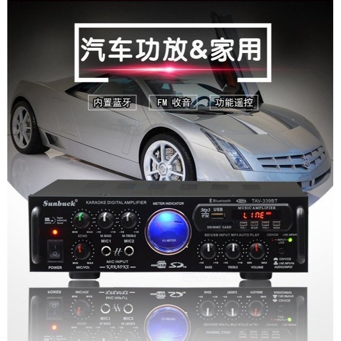 Sunbuck TAV-339BT美規藍牙大功率音箱功放器110V12V車載藍芽卡拉OK功放機家用聲音放大器商用擴大器