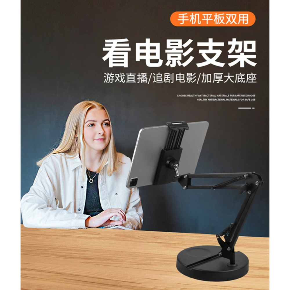 桌上手機支架平板架桌面懸臂手機支架+雲台+手機平板兩用夾圓盤手機支架平板電腦床頭追劇懶人支架主播直播懸臂支架