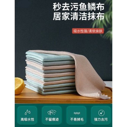 魚鱗抹布25*25cm 加厚不掉毛 30*40cm 擦玻璃拋光不留痕吸水吸油 廚房洗碗巾清潔抹布