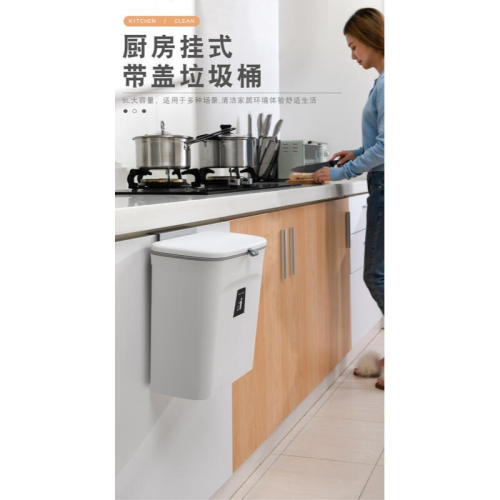 廚房壁掛式垃圾桶掛勾 無痕貼垃圾桶 家用櫥櫃門不落地懸掛分類滑蓋創意垃圾桶送刮板 掛勾+無痕貼兩用式垃圾桶