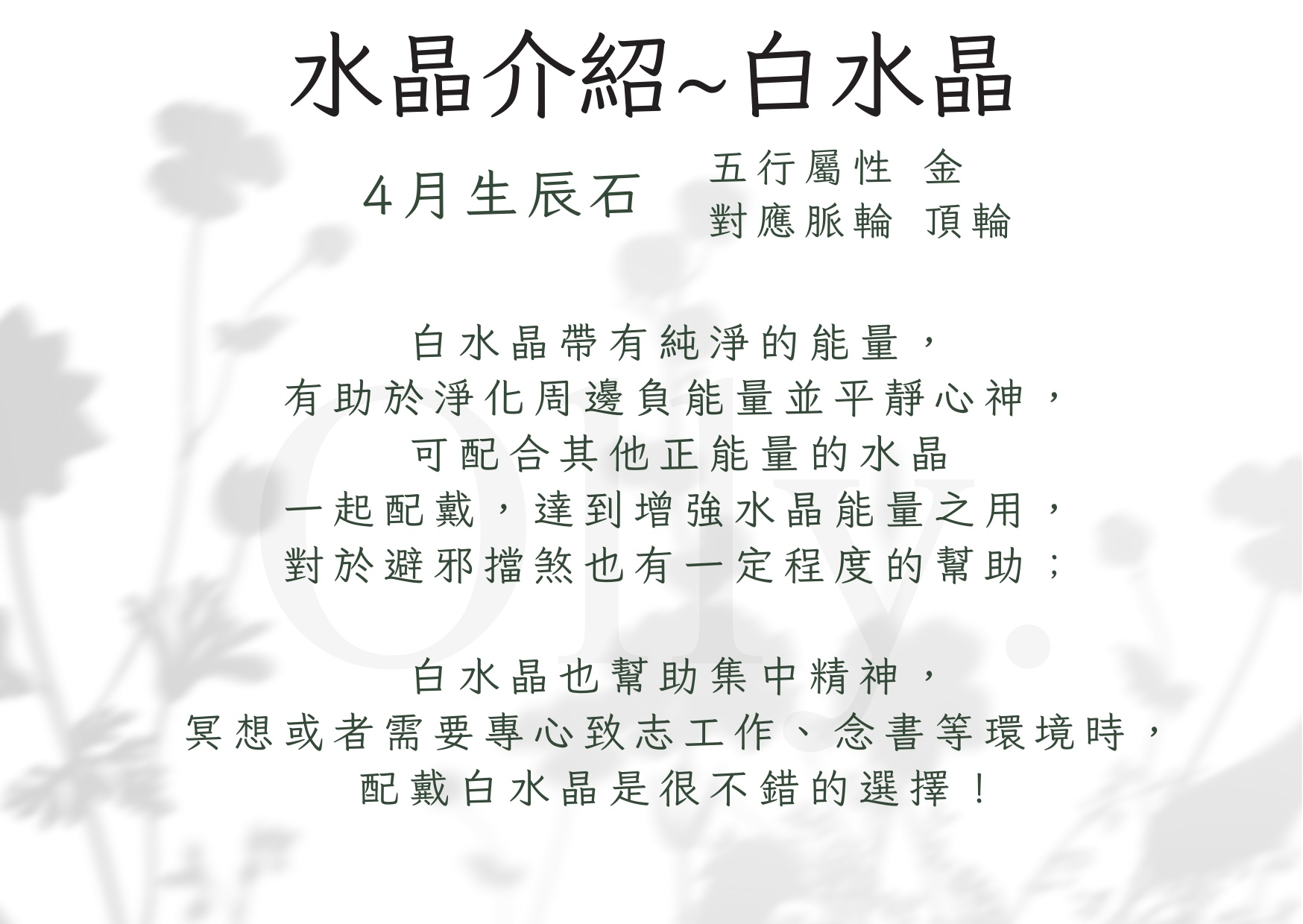 水晶等天然晶石非精細無暇,天然產物擁有其獨一無二的紋路