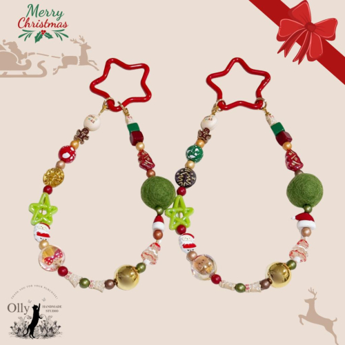 【Olly】星氈低語B-G 手機掛鍊 包掛 車掛 聖誕節 耶誕節 交換禮物 星星鑰匙扣 鑰匙圈 節日 雪花 聖誕老人 雪