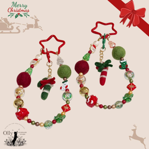 【Olly】星氈低語A 枴杖糖星願 手機掛鍊 包掛 車掛 聖誕節 耶誕節 交換禮物 可拆式 兩用鑰匙扣 鑰匙圈 節日