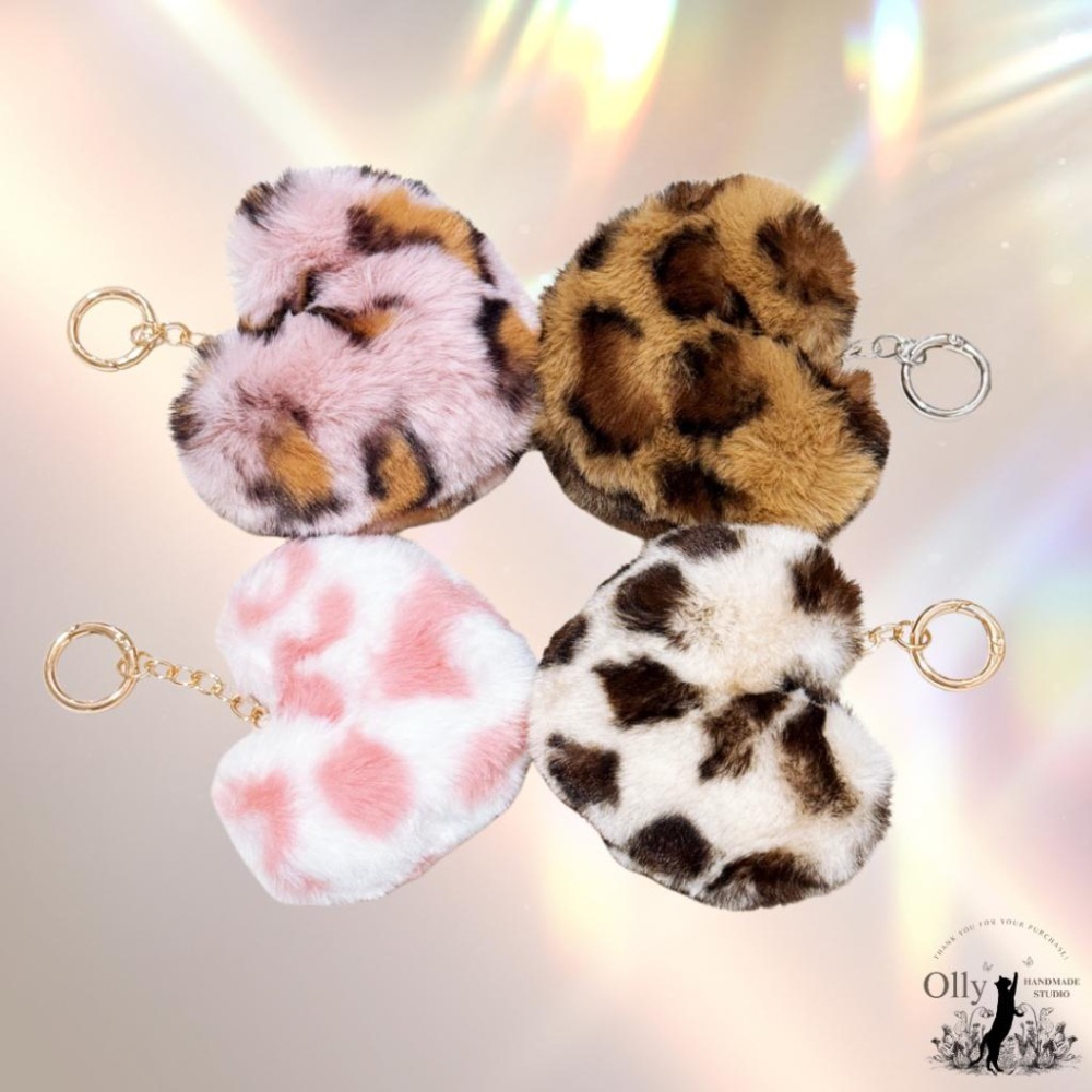 【Olly】Soft Wild Heart 毛感愛心吊飾 鑰匙圈 豹紋愛心 包包掛飾 聖誕節 交換禮物 耶誕禮物 耶誕節