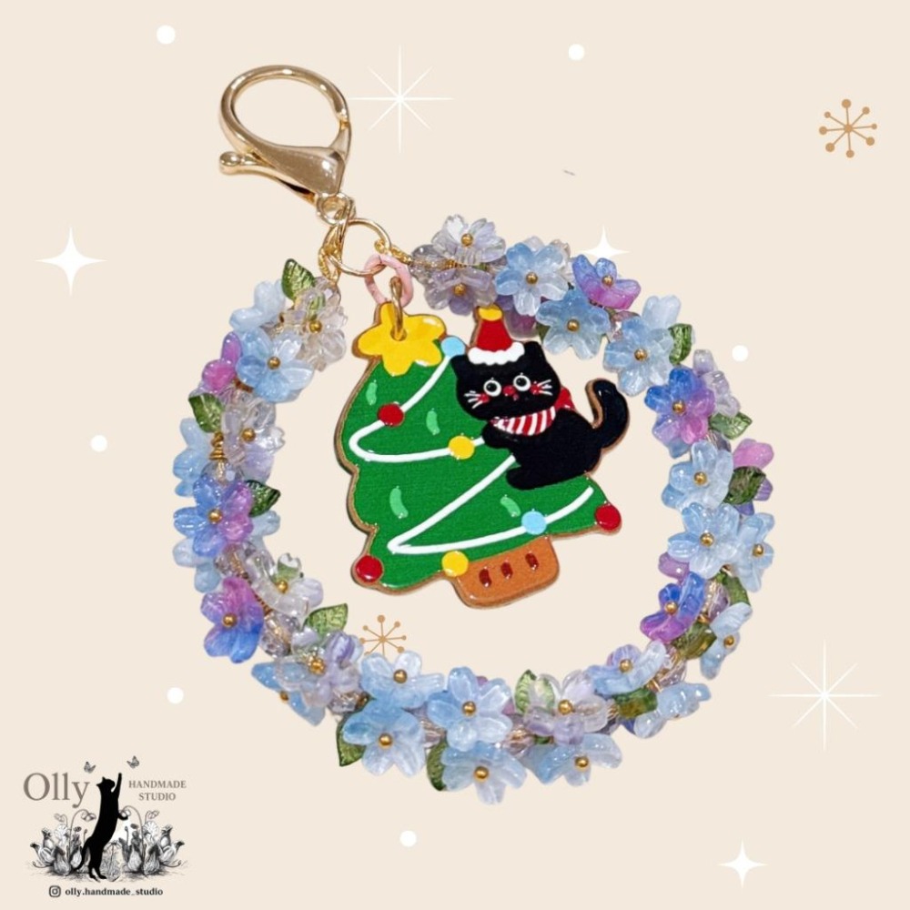 【Olly】鈴蘭聖誕花圈吊飾 🎄 聖誕樹 聖誕貓咪 (交換禮物 /聖誕禮物) 車掛 包掛 鑰匙圈 生日禮物 耶誕節
