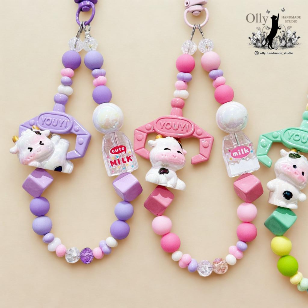 【Olly】奶牛夾心機 手機掛鍊 包掛 鑰匙扣 乳牛 牛奶瓶 夾娃娃 防摔防掉落吊飾 生日禮物 閨蜜禮物 交換禮物