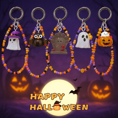 【Olly】鬼怪南瓜小隊 串珠吊飾 掛鍊 夜光幽靈 南瓜 骷髏 墓碑 節慶禮物 閨蜜禮物 交換禮物 節慶 應景小物