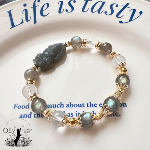 【Olly】設計款【象神】拉長石 魔鬼藍 暴力藍 灰拉長石 光譜石 彈性手鍊 水晶手串 情人節 母親節 閨蜜 生日禮物