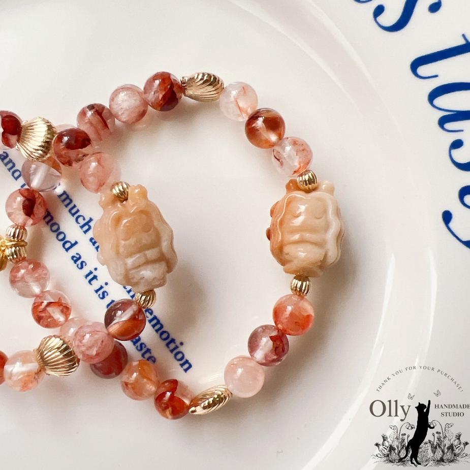 【Olly】設計款【人魚公主】紅膠花 增信心招好運 招正財提升自信 生日禮物 珊瑚玉 水晶手鍊 彈性手環 手鍊 情人節