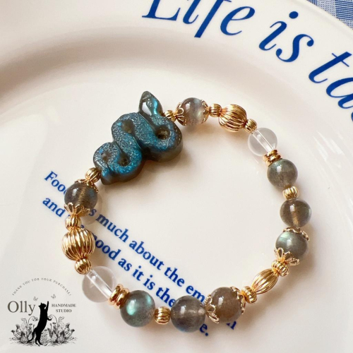 【Olly】設計款【生肖款一蛇】拉長石 魔鬼藍 暴力藍 灰拉長石 彈性手鍊 水晶手串 情人節 母親節 閨蜜 生日禮物