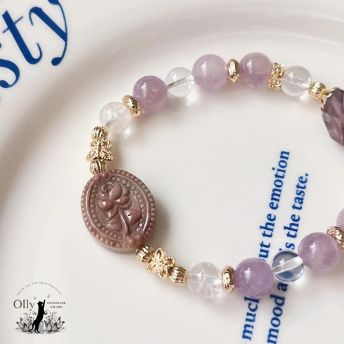 【Olly】設計款【玫瑰花韻】古典花牌 彈性手鍊 彈性手串 情人節 母親節 閨蜜手鍊 生日禮物 交換禮物