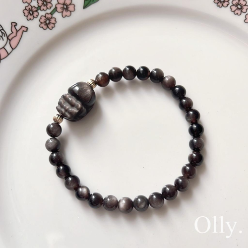 【Olly】設計款【貔貅】銀曜石 擋煞避邪 驅除負能量 提升氣勢 生日禮物 水晶手鍊 情人節 彈性手鍊 聖誕禮物 送禮