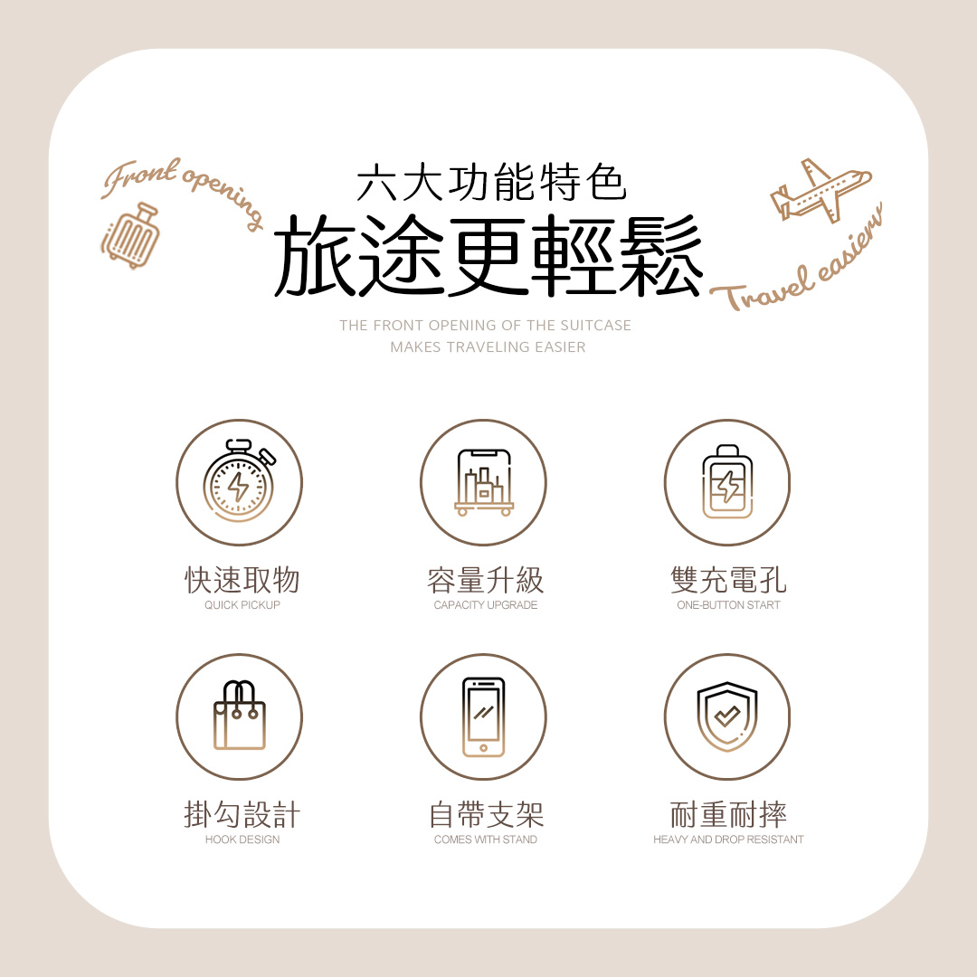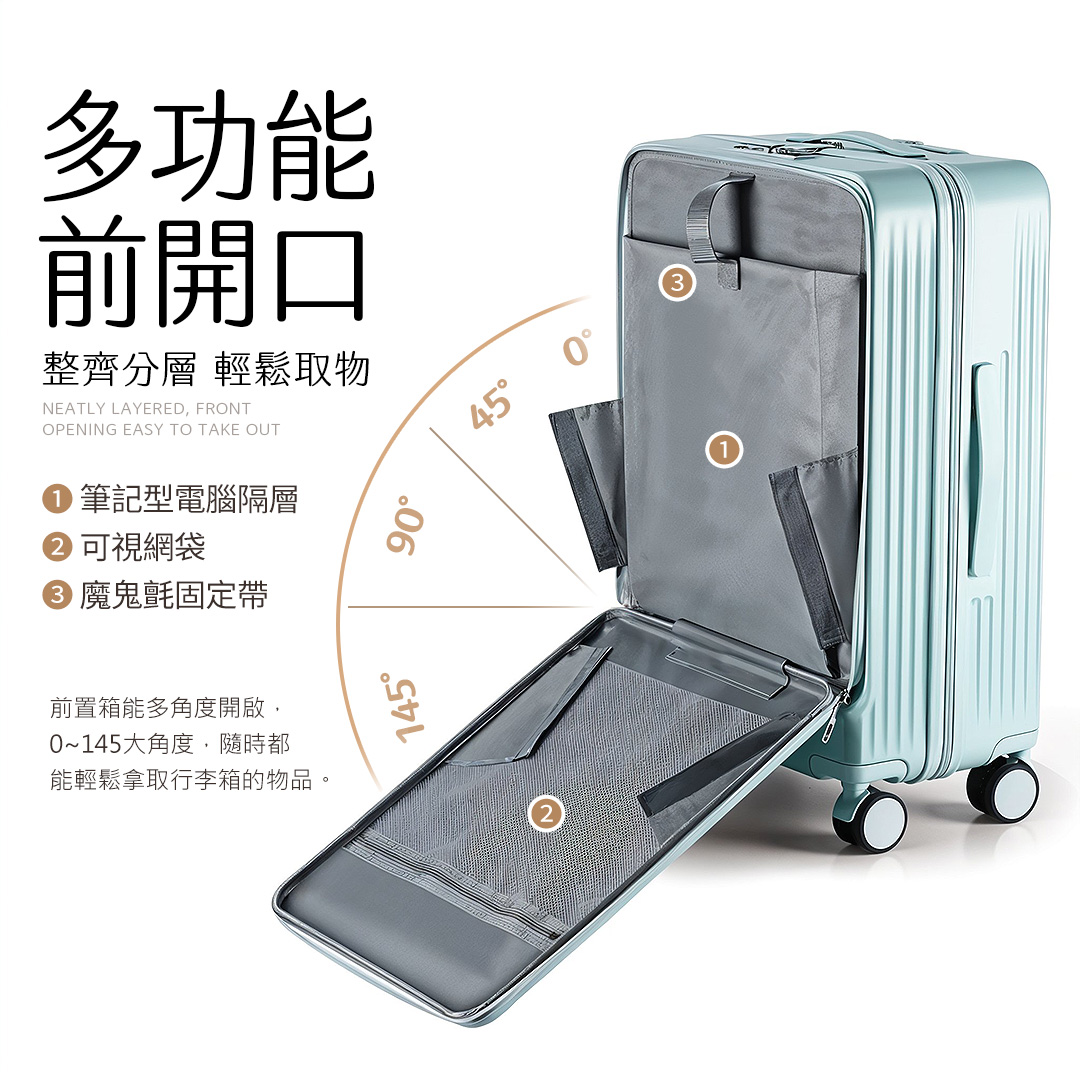 無論是出差還是旅行,這款前開式行李箱將帶來前所未有的便利體驗。專為現代旅人設計,融合多重實用功能與美型外觀,出門就選它,輕鬆又有型!