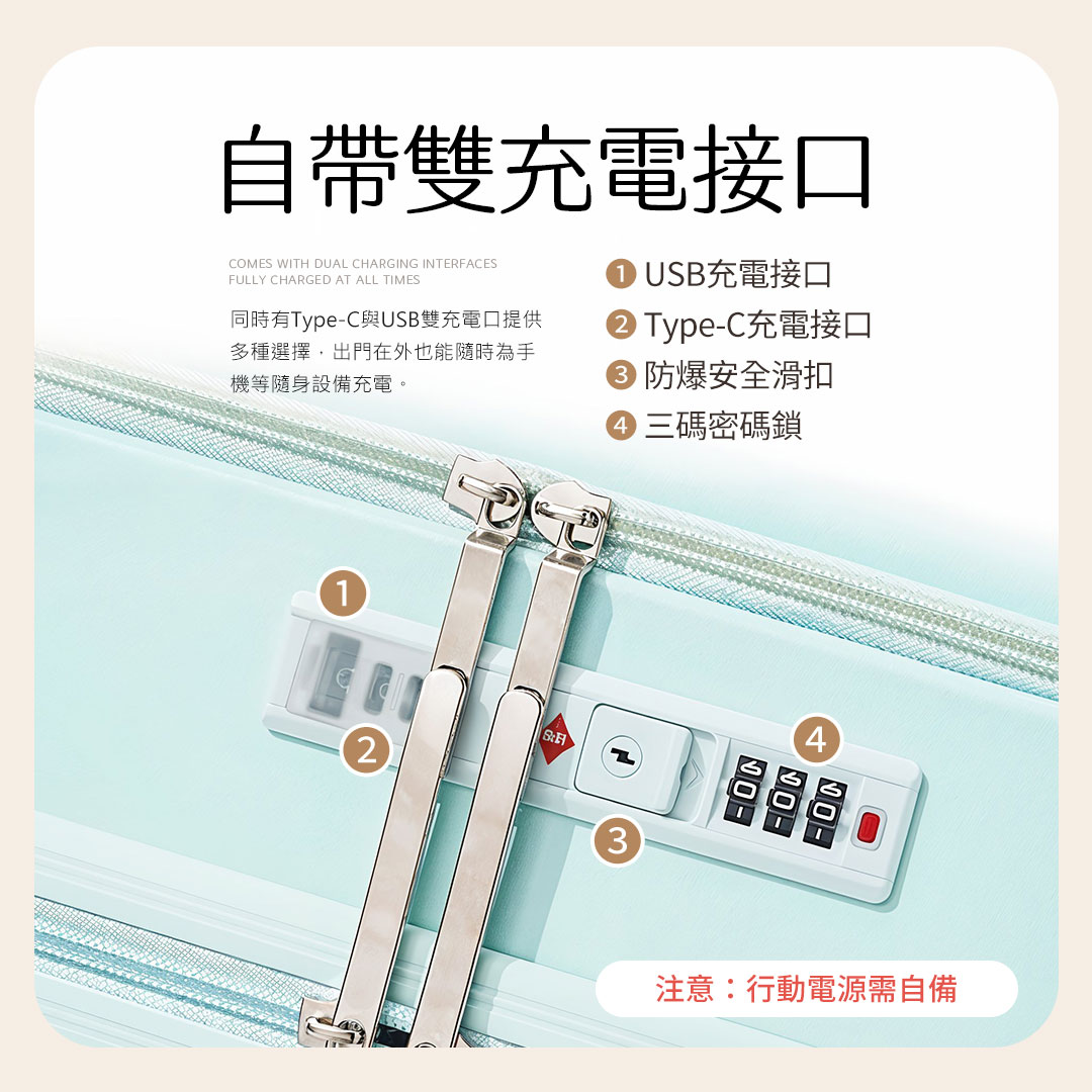 內建USB & Type-C雙介面,外出行動電源輕鬆連接,旅途中隨時補電不斷線。
