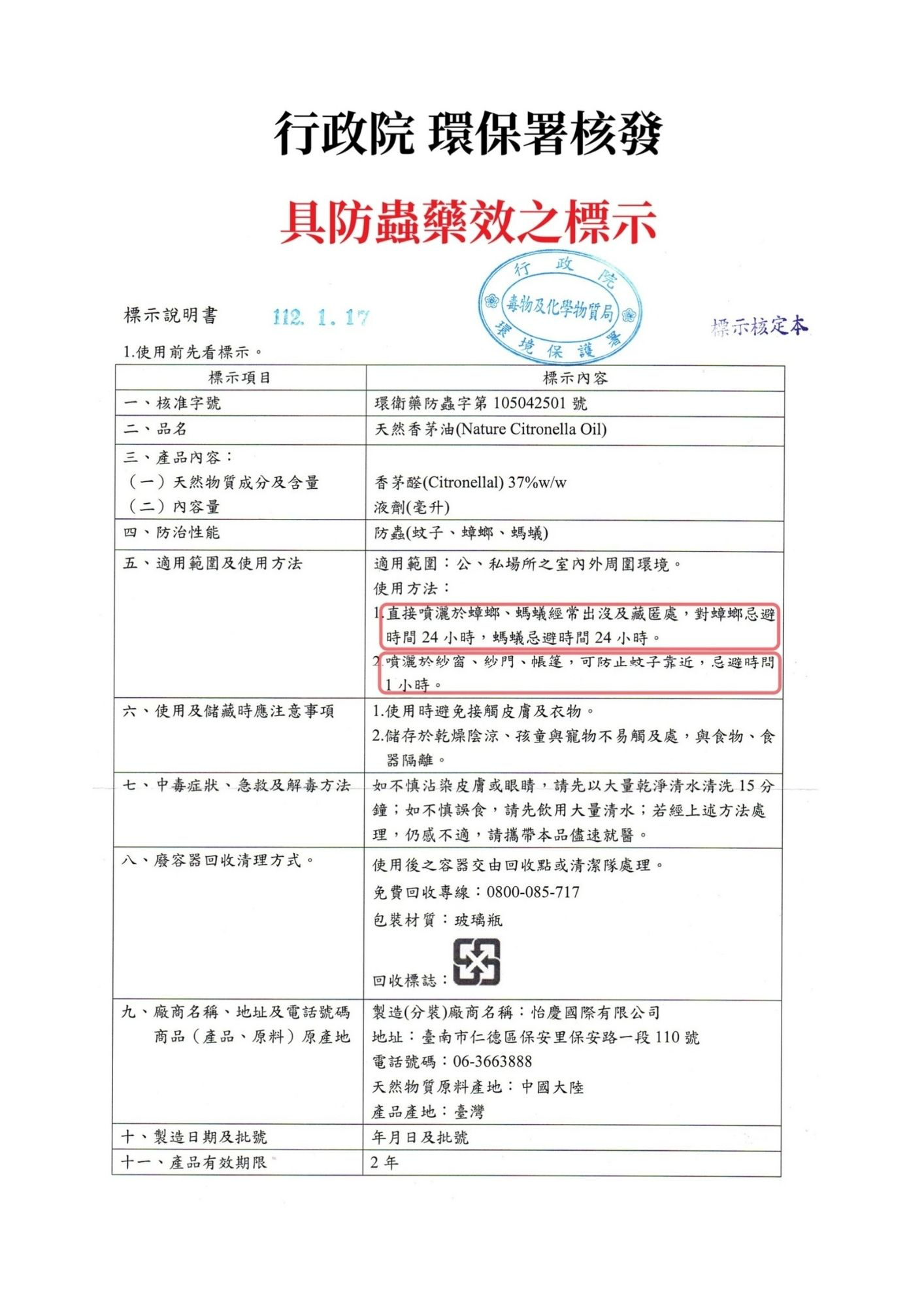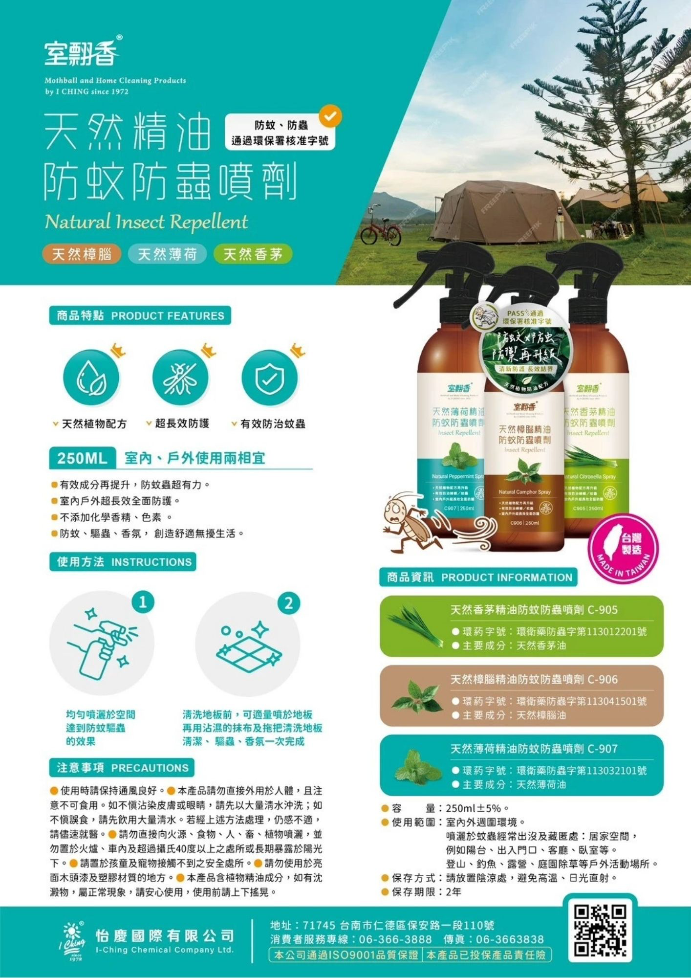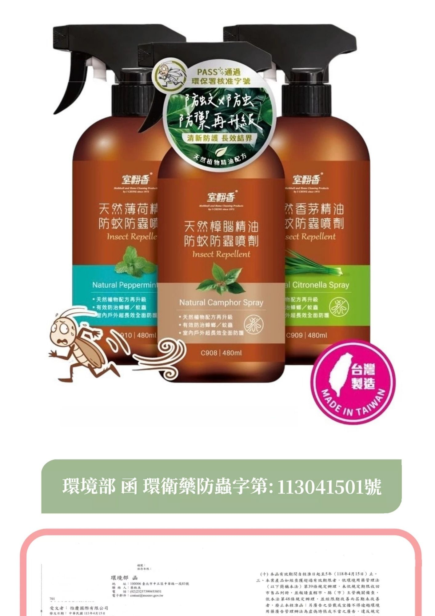 室翲香-防蚊防蟲劑250ml(香茅、樟腦、薄荷)
