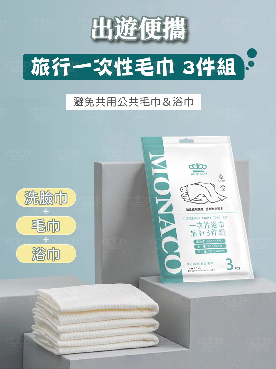 【7-ELEVEN 門市團購】MONACO-純植物性纖維強吸水拋棄式浴巾 3件組