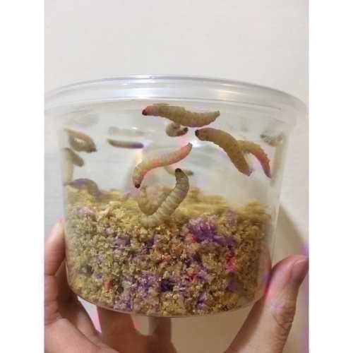我們蠟蟲飼料較大 運送時間長 也可能把盒子弄破(塑膠盒破掉會在報紙或紙盒內,可以在包裹內找找,若介意請下單宅配)