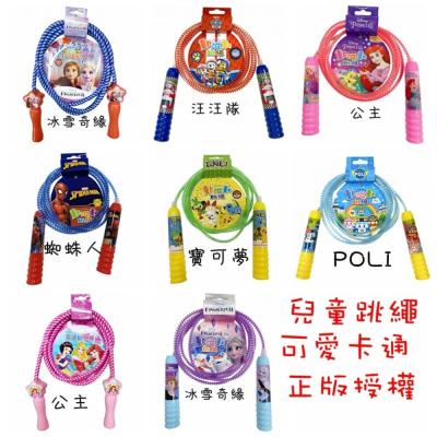 ▲把柄上貼有卡通角色圖案貼紙。跳跳繩時請先將所附套管置於跳繩中央,可避免跳繩損壞。
