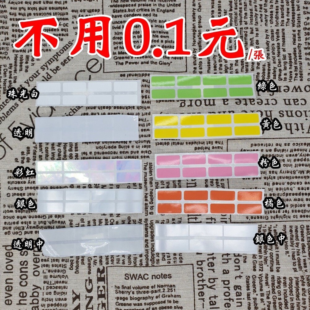 🌀貼紙底色有: 銀、白、彩虹、透明、黃、橘、粉紅、草、透明中、銀色中、 (10種)