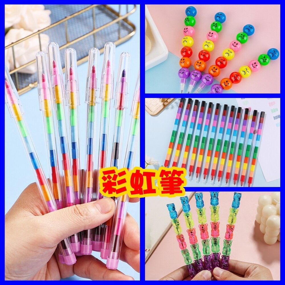 彩虹筆 胖胖彩虹筆 積木彩虹筆 笑臉蠟筆 免削鉛筆 小熊 兒童禮物 著色筆 幼兒園禮物 可拆彩色筆 兒童生日送禮小