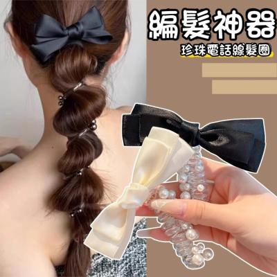 蝴蝶結 泡泡辮 泡泡辮頭繩 電話線 髮圈 馬尾 編髮神器 辮子神器 珍珠 氣質 馬尾編髮 直條電話線髮圈 扎頭繩