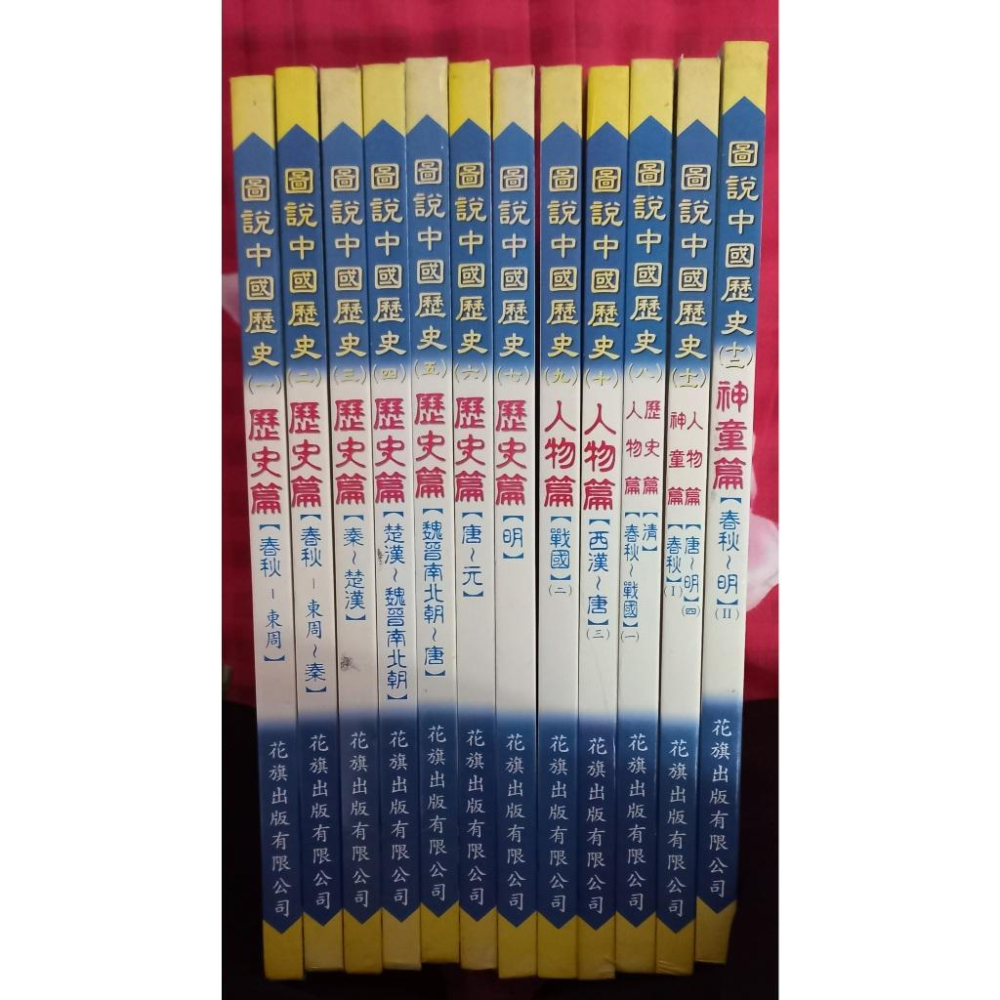 圖說中國歷史 共12冊: 1歷史篇【春秋(東周)】   2歷史篇【春秋(東周) ~ 秦】  3歷史篇【秦 ~ 楚漢】  4歷史篇【楚漢 ~ 魏晉南北朝】  5歷史篇【魏晉南北朝 ~ 唐】  6歷史篇【唐 ~ 元】  7歷史篇【明】 8歷史篇【清】、人物篇【春秋 ~ 戰國】一 9人物篇【戰國】二 10人物篇【西漢 ~ 唐】三 11人物篇【唐 ~ 明】四、神童篇【春秋】一 12神童篇【春秋 ~ 明】二 12本原價9600元 由於超過5公斤,只能用新竹物流或嘉里快遞