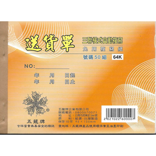 內頁:非碳複寫紙(上白中紅下藍)