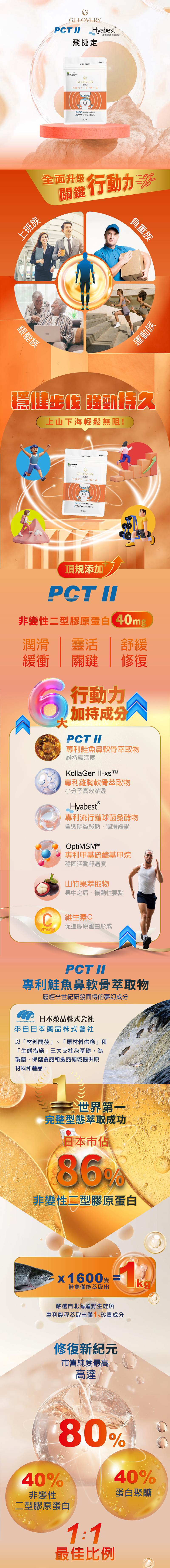 美國U牌八倍功效 日本藥品株式會社, 歷經30年終於從北海道鮭魚鼻軟骨中萃取出珍貴的 「非變性二型膠原蛋白:蛋白聚醣」複合物, 以專利純水萃取技術, 保留完整立體3D結構,有效維持行動靈活。 一天兩顆空腹食用,避免睡前服用 本產品還有魚類及其製品,不適合對其過敏體質者食用 包裝尺寸:10.5x16.5cm 專利鮭魚鼻軟骨 20mg 專利二型膠原蛋白 200mg (含軟骨素20%以上) 專利玻尿酸 40mg 山竹果 100mg 維生素C 50mg 專利MSM 80mg